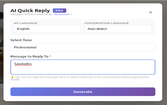 凭借其用户友好的界面,AI回复助手无缝集成到WhatsApp Web平台,使用户能够增强他们的消息工作流程。该工具专注于通过提供基于对话上下文的相关回复选项来提高生产力。这确保用户能够保持沟通的流畅性,而不会出现不必要的延迟,使其成为频繁使用WhatsApp Web用户的必备插件。